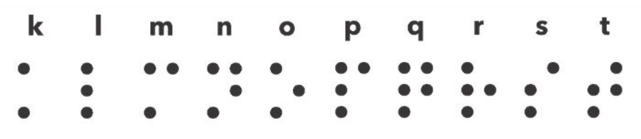 Braille Lower-Case Letters K-T