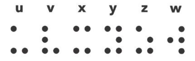 Braille Lower-Case Letters U-Z